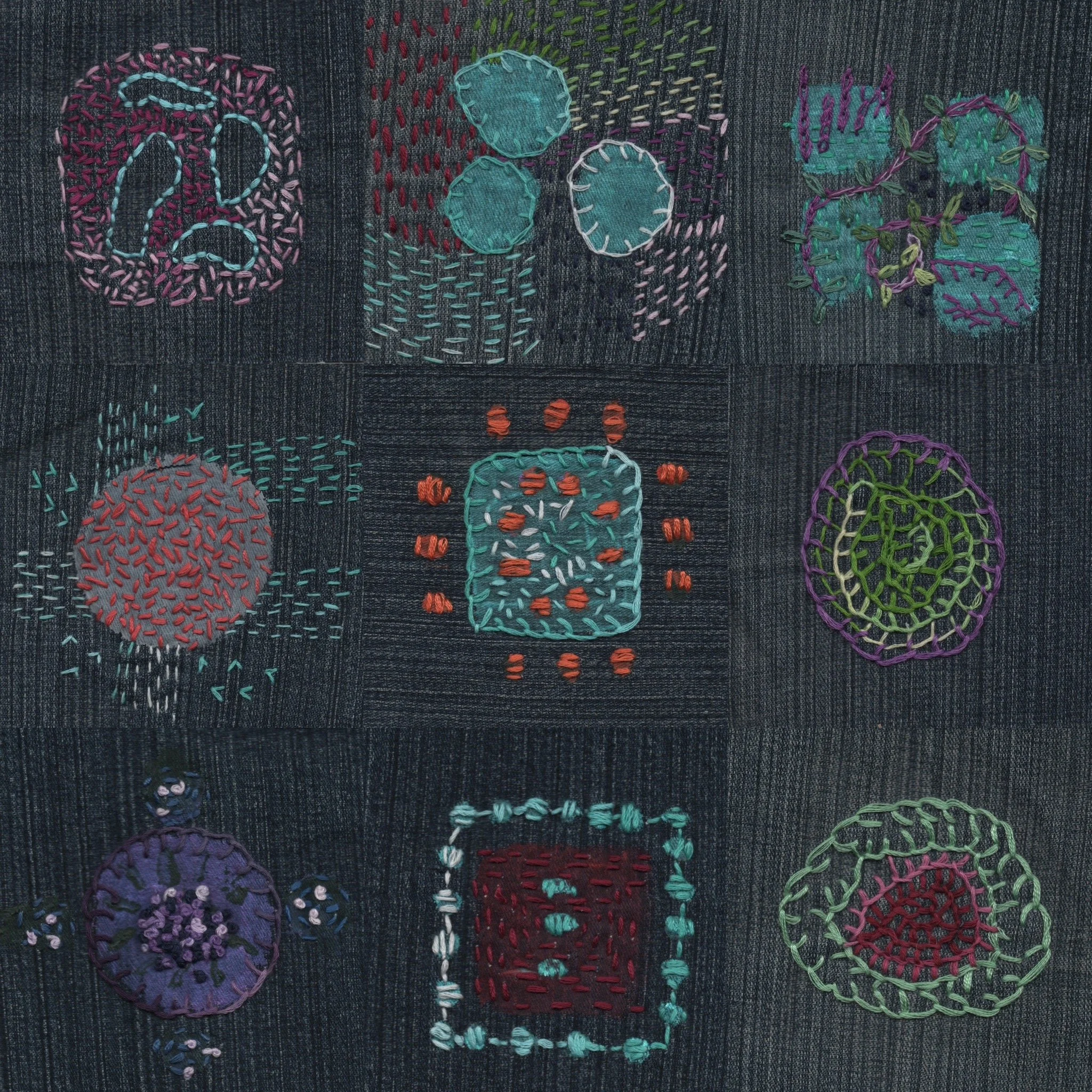 At the moment I am playing around with hand embroidery on little squares of denim. I have 31 of them so far and I am trying to decide what to do with them. Lots of options keep popping into my head!